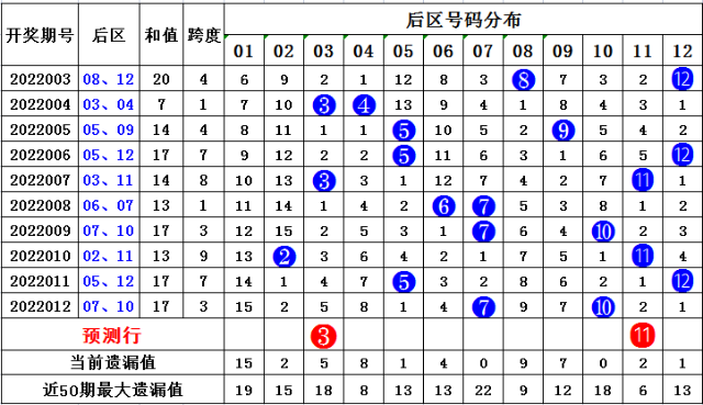 大乐透本期8+3参考:01、08、15、16、21、22、29、31+01、03、11