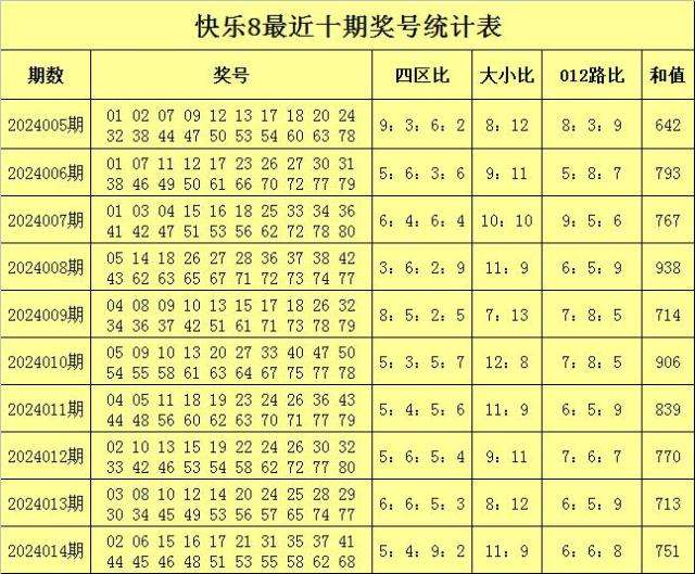 福彩快乐8第2024014期开奖回顾:02 06 15 16 17 21 31 35 37 41 44 45 46 48 51 53 55 58 62 68,其中奖号四区比为5:4:9:2。