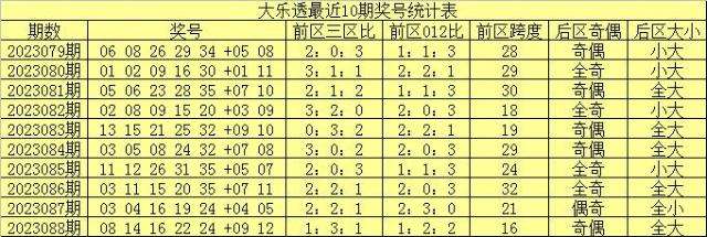 大乐透第2023088期奖号开出:08 14 16 22 24 +09 12。其中前区三区比为1:3:1,012路比为1:2:2,后区开出全大、一奇一偶奖号。