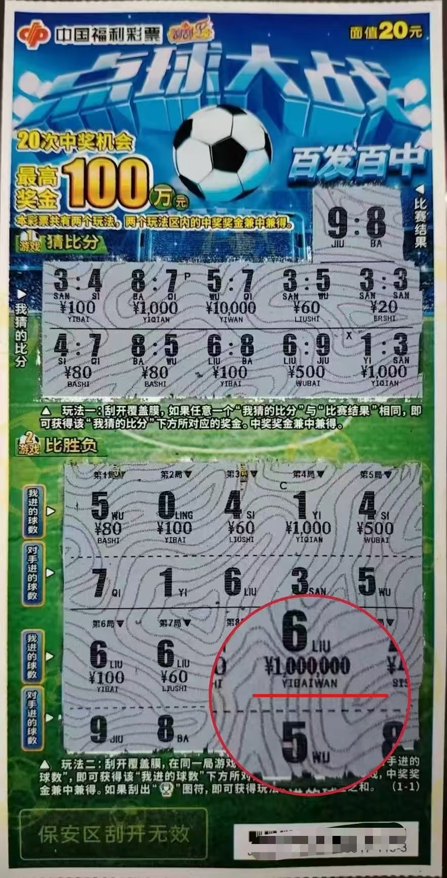 据了解,中奖者王先生(化名)是位有着十余年购彩经验的老彩友。当晚他照例在下班途中走进常去的37068209号投注站,原本打算购买双色球,却被展示柜里新到的"百发百中"彩票吸引。"之前看新闻说这款票刚在淄博中出百万奖,没想到咱们烟台也这么快开花了!"王先生回忆时仍难掩激动。他随手挑选了五张连号彩票,刮到第三张时,"比赛得分"区赫然出现与"你的得分"完全相同的数字,后经销售员再三确认,才敢相信自己真的斩获头奖。