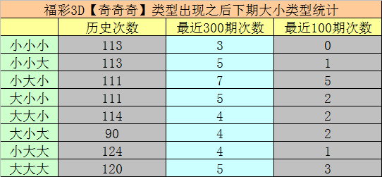 二、最近7次【大大小】奖号之后,其下期分别开出号码:664、500、225、573、053、585、092,其中组三号码出现4次,组六号码出现3次。本期预计开出组六号码。