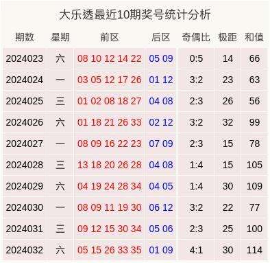 最近10期大乐透奖号统计表