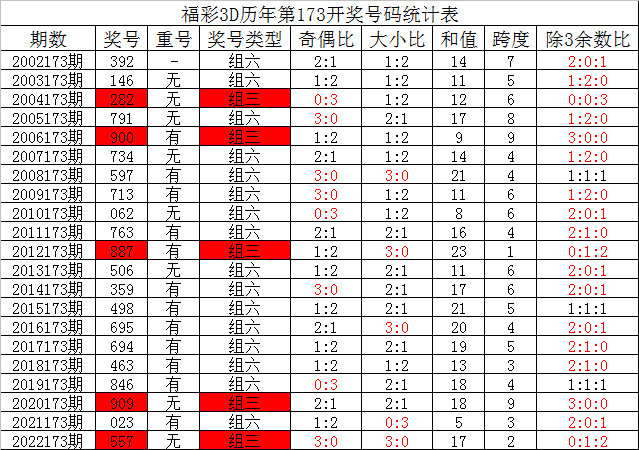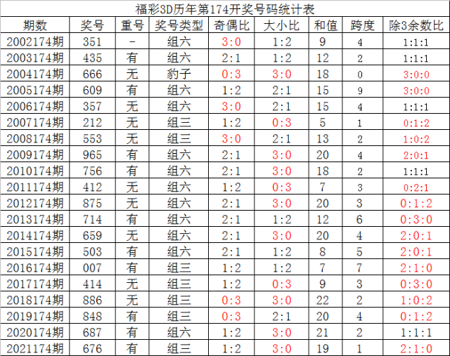 174期夏姐福彩3D预测奖号:历史同期大数据