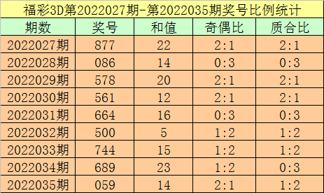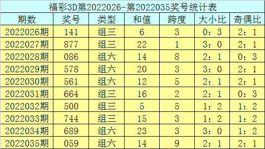 开奖回顾:福彩3D第2022035期:奖号059。