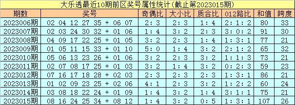体彩大乐透第2023016期定位奖号属性分析: