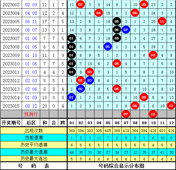 后区5码参考:03 04 07 08 10