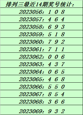 上期回顾:排列三第2023069期奖号:932。和值14,跨度7。