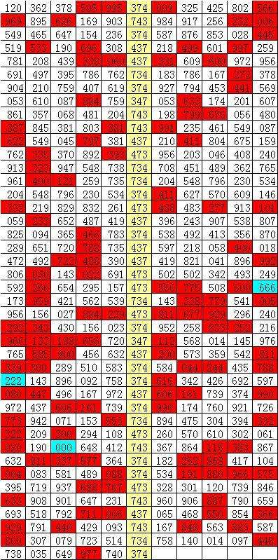 在以上统计表中,组选号码347开出之后,其下期组三号码出现12次,组六号码出现29次。其中,下期奖号有19期无重号,有22期开出重号,本期预计重号开出,看好开出组六号码。