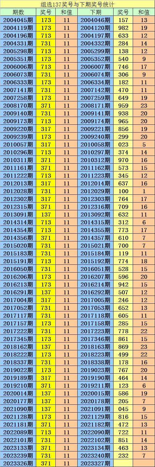 第2023326期3D奖号组选为:137,历史上该号码组选出现58次,下期号码分别为:157、982、633、284、138、540、746、306、182、470、649、959、938、965、856、299、023、374、970、573、345、637、100、764、709、632、312、773、610、700、119、774、528、596、942、507、246、652、605、285、778、861、869、499、178、767、464、123、586、205、045、816、472、722、851、463、232。