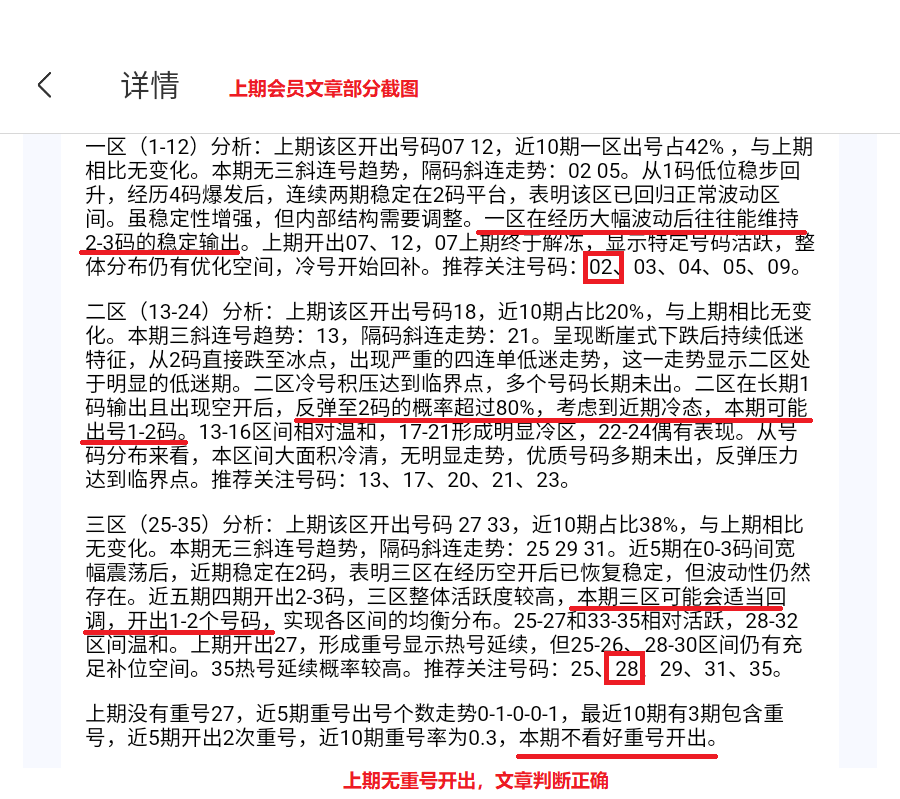 大乐透的会员文章每个区间给出更详细的分析,增加了重码,连号分析。