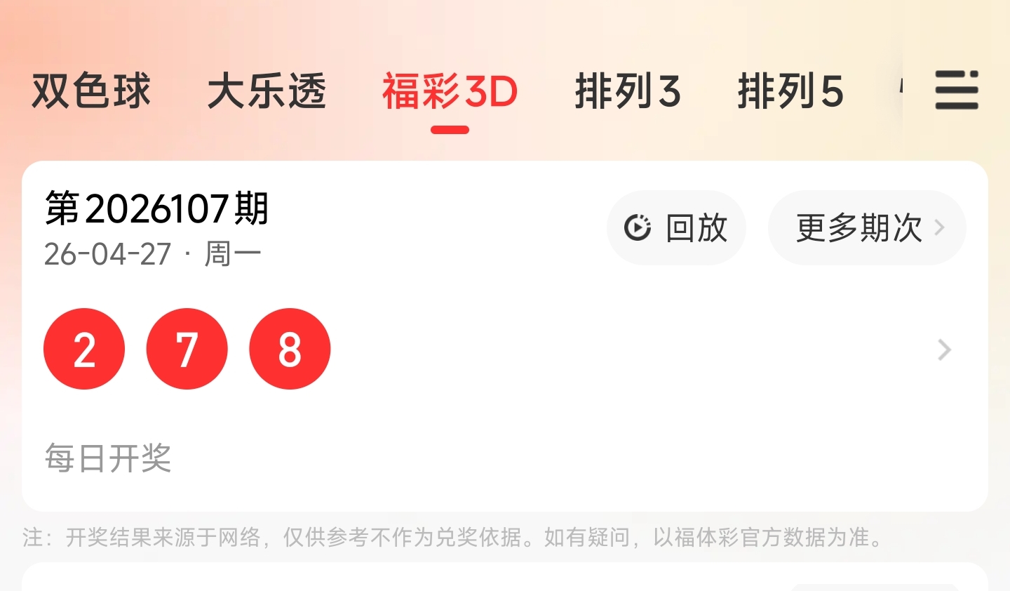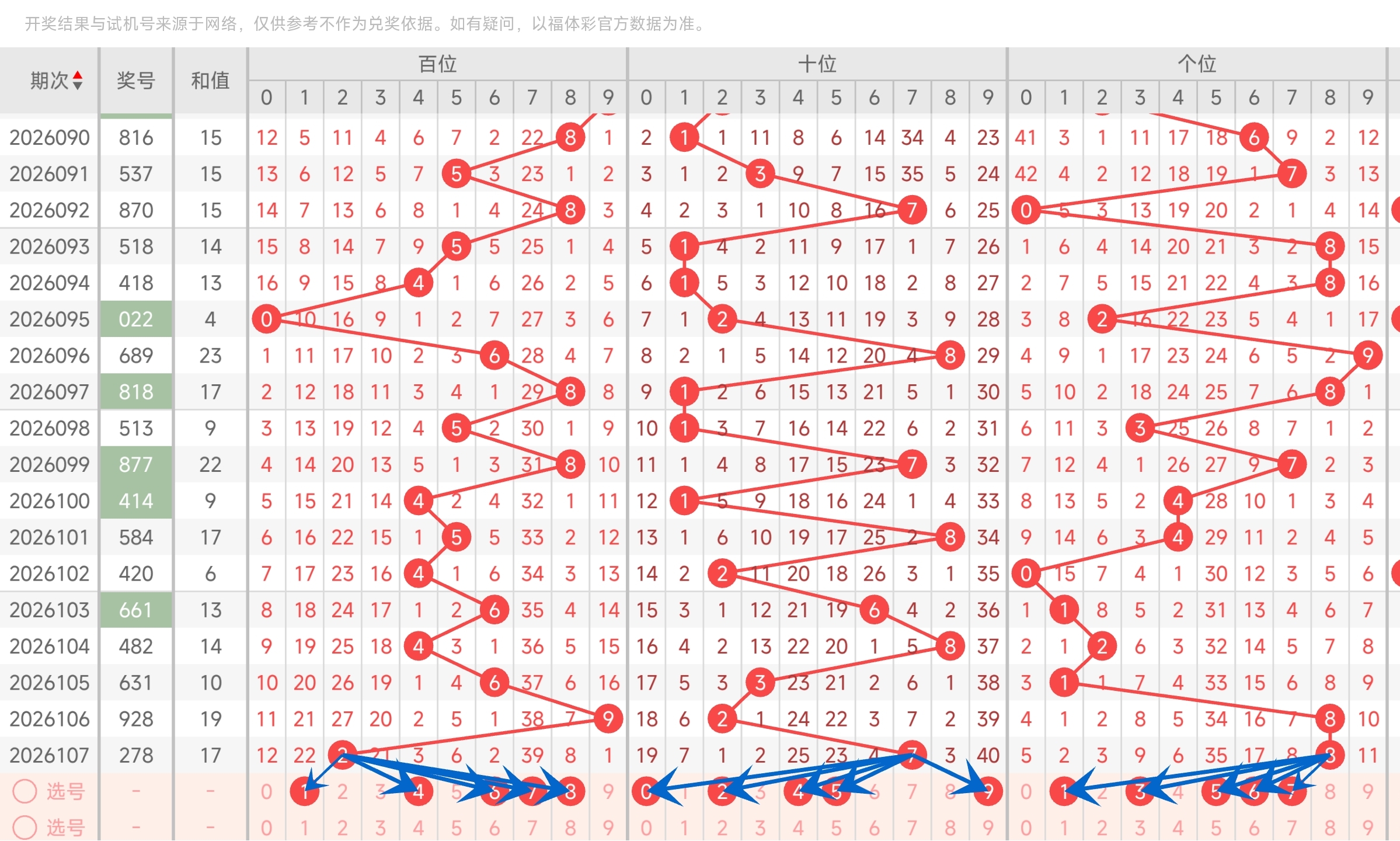 第2026101期福彩3D分析文章,2胆命中5,7码复式命中584。