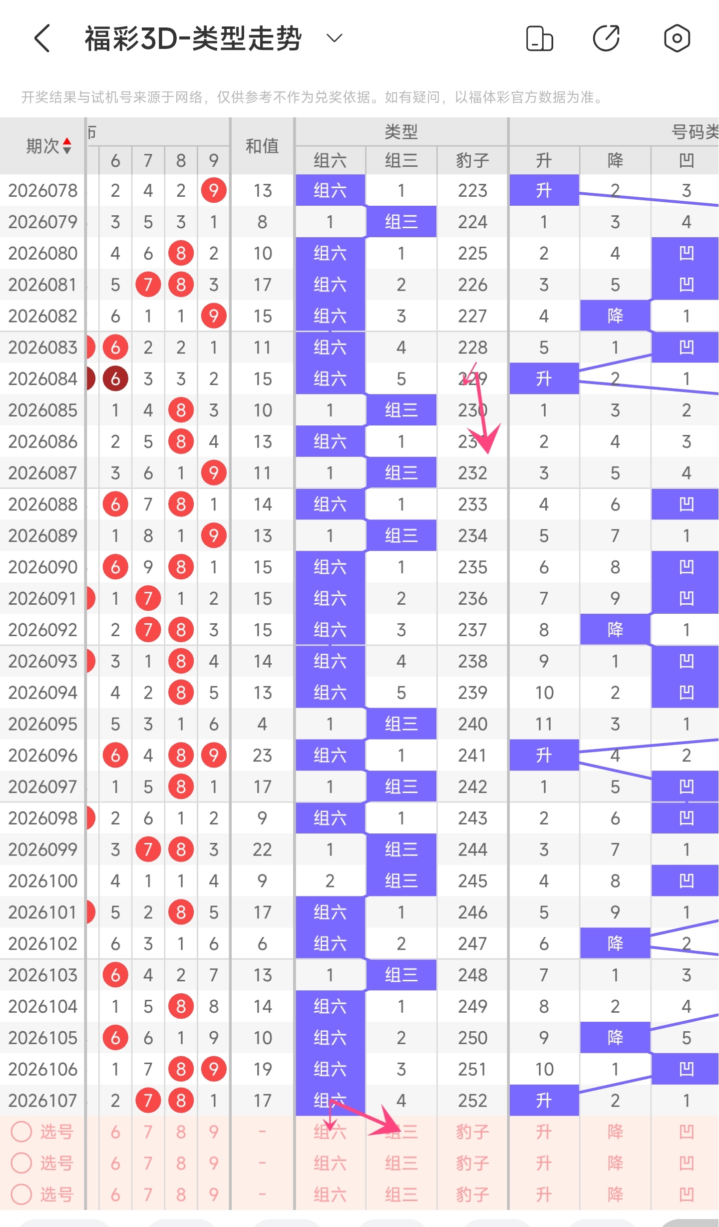 上期开出了组六类型,往前一期是组六类型。理论上开出组六的概率是72%,开出组三的概率是27%,开出豹子的概率是1%。通过分析目前30期内已经开出的概率,组六概率为70%,开出组三概率是30%。开出豹子的概率为0%。与前一期相比,组六概率变大,组三概率变小。通过走势图可以看到上期开了组六,推测本期可能开组六,但最近组三也经常开出,防一下。所以推测本期大概率开组六,防开组三。