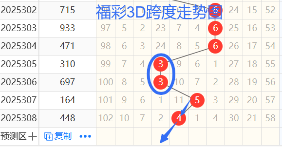 依次是63354跨度,按照路数转换关系来看,那么跨度我们暂定147258跨 ,本期个人比较看好3 跨。