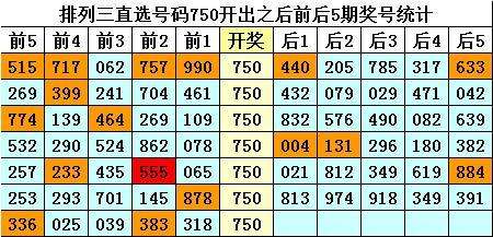 四、排列三直选号码750历史上开出7次,其前后五期奖号分别为: