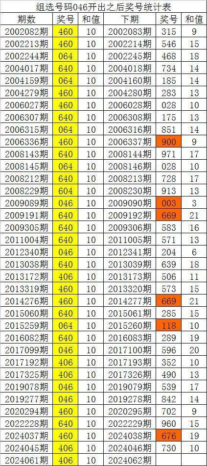福彩3D第2024061期开出组选号码:046,该号码历史上组选出现了36次,其下期分别开出了号码:315、546、468、734、185、283、028、175、851、900、971、028、728、913、003、669、583、571、204、639、506、573、669、285、118、289、596、352、490、539、842、702、960、676、730,如图: