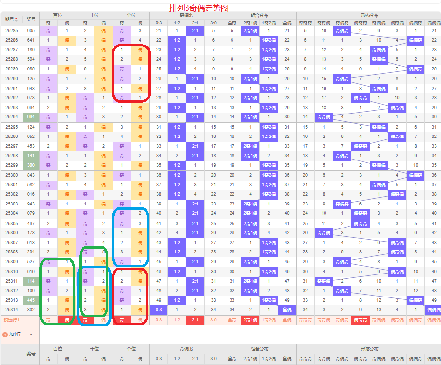排列3第25314期开出的号码802,和值10,跨度8,奇偶比为0:3,大小比为1:2,012路个数比为1:0:2,组六的形态。