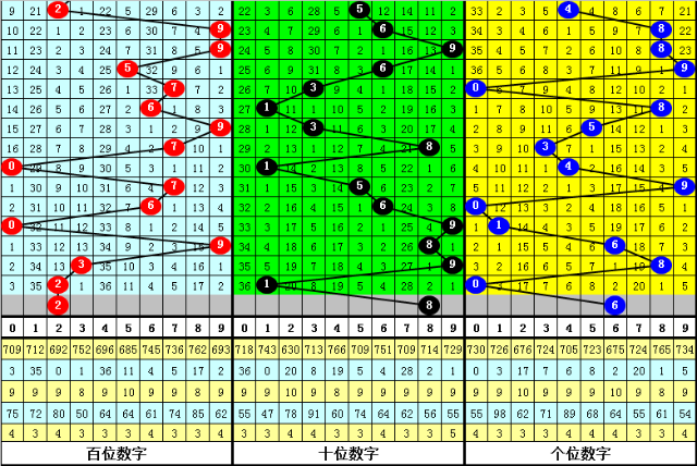 百位分析:最近50期表现较热的号码有:7出现9次,5出现8次,0、9出现7次;表现较冷的号码有:4出现1次,1、3出现2次。出号奇偶比为28:22,012路比为21:12:17。本期该位绝杀两码6、9,参考号码2、3、4,精选一码2。