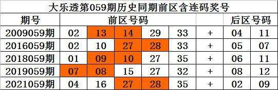 7。在历史同期奖号中,后区和值大小比为10:7,其中小号和值出现较少,今年同期防小号和值回补。