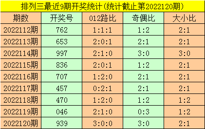 开奖回顾:体彩排列三第2022120期开出奖号:939。奖号基本特征为: