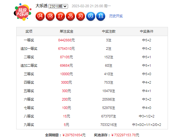 大乐透第23018期开奖。当期开奖号码为:前区04 08 17 26 30,后区03 11。当期前区号码大小比为2:3,奇偶比为1:4,三区比2:1:2,前区没有开出重号和连号;后区开出小大组合03 11。