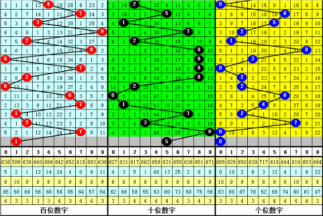 第二位3-6之间的中号开出7个,目前遗漏1期,其中号码4出现0次,目前遗漏46期;号码6出现1次,目前遗漏25期;号码5出现2次,目前遗漏13期;号码3出现4次,目前遗漏1期。