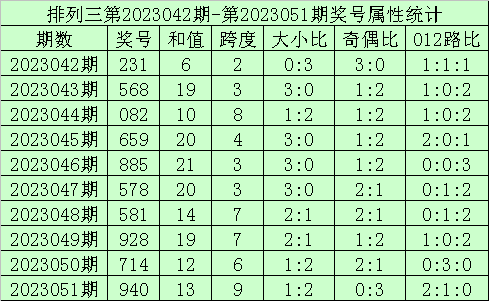 上期回顾:排列三第2023051期开奖号:940,奖号和值:13,奇偶比0:3,大小比1:2。