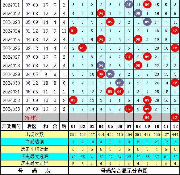 本周星期三第二区号码大范围关注:12、14,精选号码:12。