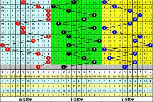 在连续10期开奖中,和值振幅分别为:12-3-4-11-2-9-3-7-0-7,开始上升,和值比较分散,本期预计和值波动较大,预计在中部区域开出。