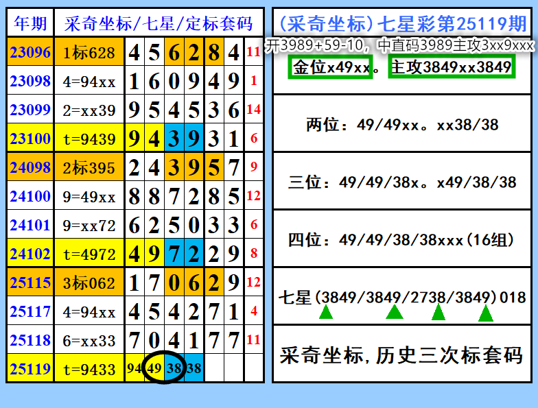 视频经典回顾,七星彩第25119期,中直码3989主攻3xx9xxx