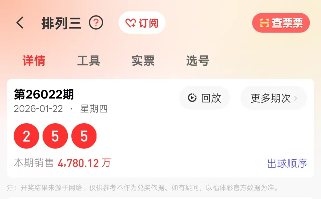 花花排列三第2026023期:上期5码中直选组选,近6期中奖5次