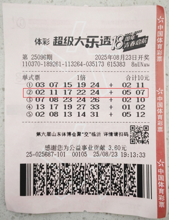 生日号码藏好运! 聊城购彩者斩获大乐透二等奖 10小时前 202阅读