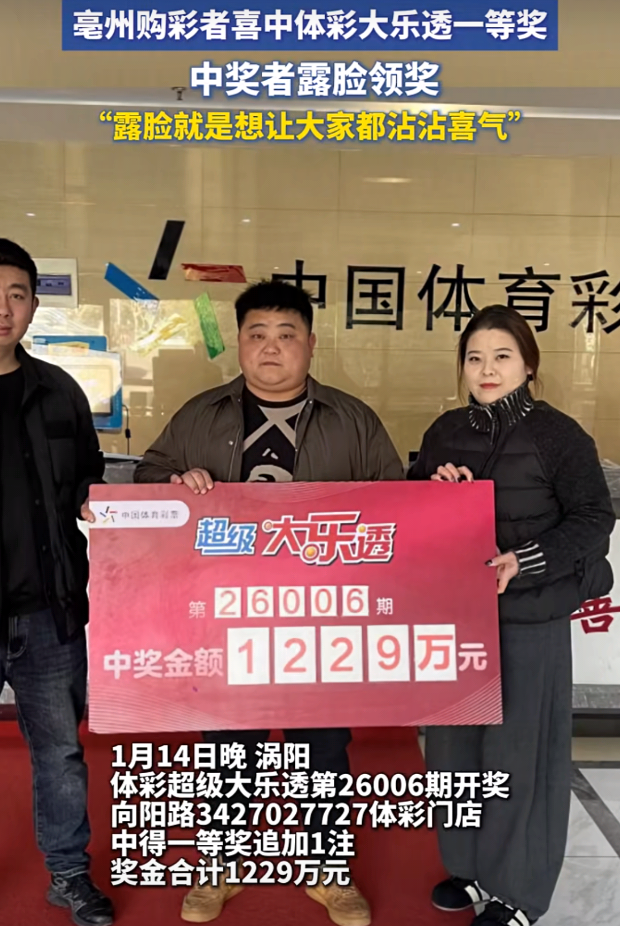 亳州购彩者露脸领走大乐透1229万:“想让大家都沾沾喜气” 1-18 499阅读