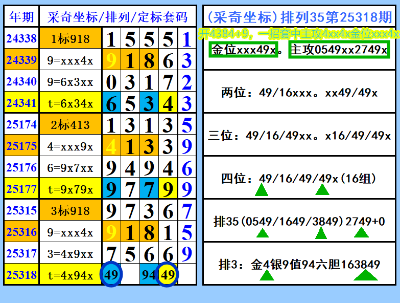 (采奇坐标)视频经典回顾,排列35第318期,一招套中主攻4xx4x金位xxx4