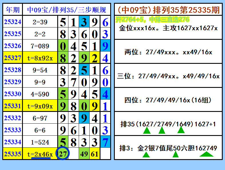 (中09宝)视频经典回顾,排列35第335期,中排三直选276