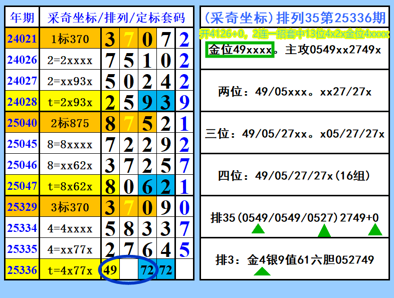 (采奇坐标)视频经典回顾,排列35第336期,2连一招套中13位4x2x金位4