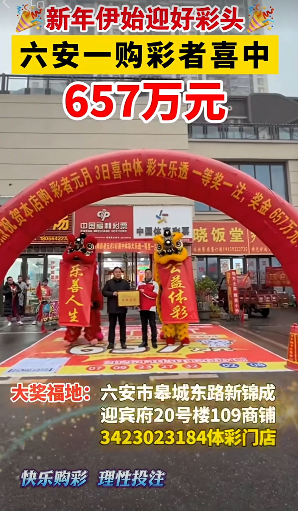 新年开门红!六安购彩者喜中体彩大乐透657万元大奖 18小时前 132阅读