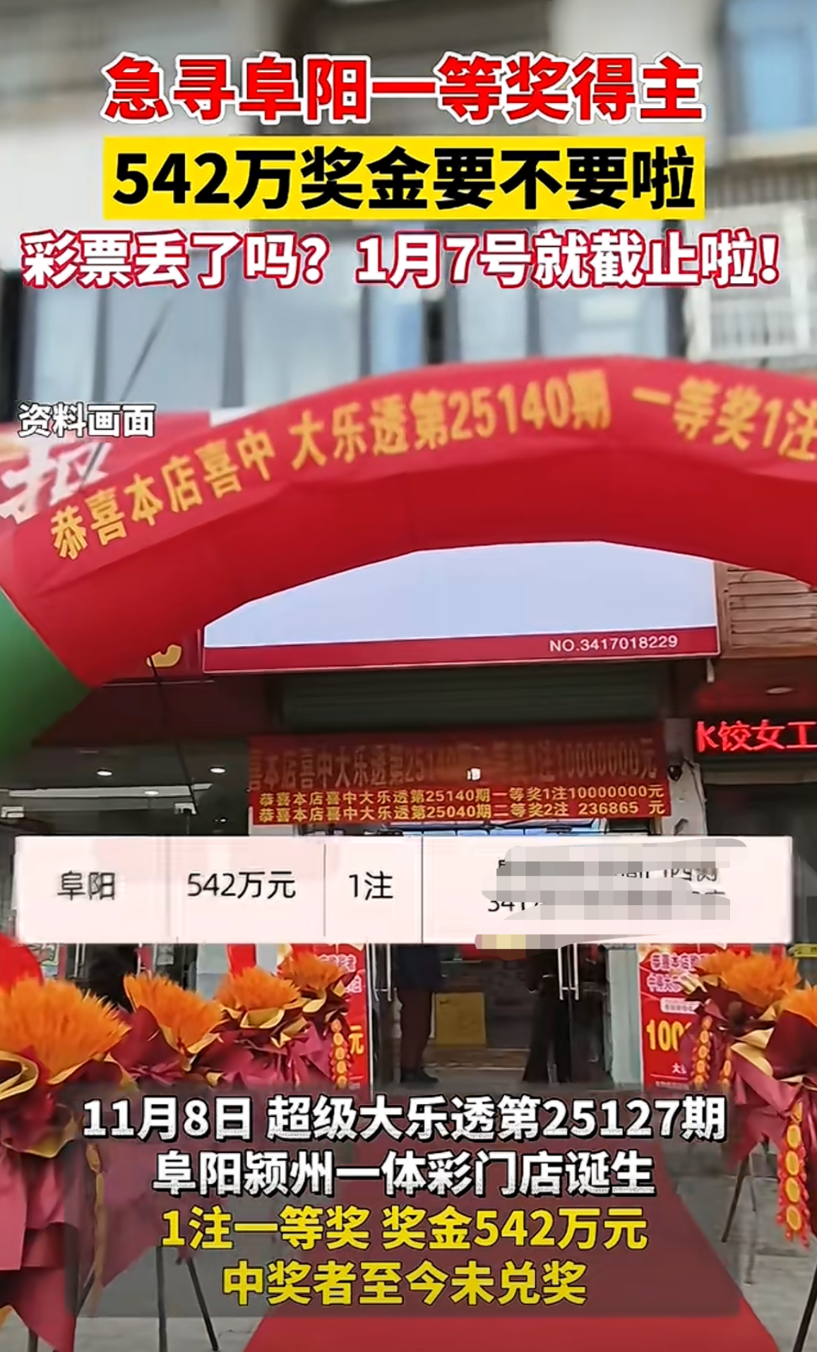 阜阳542万大乐透大奖无人认领 兑奖截止进入倒计时 16小时前 257阅读